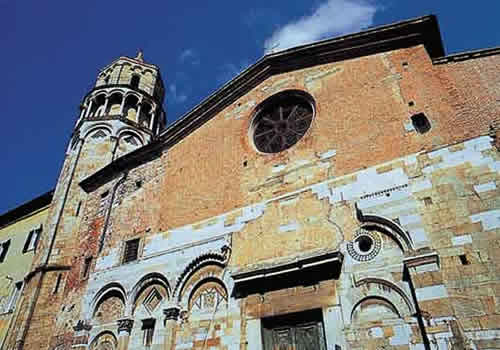De kerk, gebouwd in de elfde eeuw, heeft een gevel met een marmeren gericht en two-tone ingelegd veelkleurige afgeleid van de Romaans-Pisaanse, terwijl het bovenste deel werd later gebouwd, is baksteen.