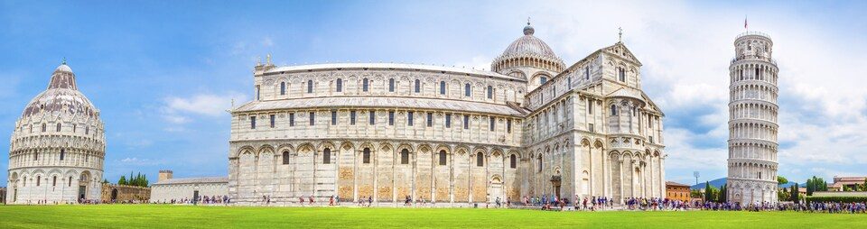 Pisa, Piazza dei MiracoliLa Piazza del Duomo di Pisa, centro artistico e turistico più importante della città, è universalmente nota con il nome di Piazza dei Miracoli. Vi si possono ammirare i monumenti che formano il centro della vita religiosa cittadina, definiti da Gabriele d’Annunzio, per la loro bellezza e originalità, miracoli: la Cattedrale, il Battistero, il Camposanto monumentale e la Torre pendente. Nel 1987 la Piazza è stata inclusa  dall’UNESCO tra i siti riconosciuti come Patrimonio dell’Umanità.